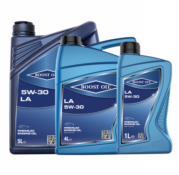 BOOST OIL 5W-30 LA is a synthetic high-performance low-friction oil for petrol and diesel engines in passenger cars. It is a low-SAP product with reduced sulphur, ash and phosphorus content. Base oils produced with the latest synthesis technology and carefully chosen innovative highperformance additives help reduce the sulphated ash content and guarantee reliable wear protection and keep the engine clean. Excellent cold start behaviour ensures optimum lubrication during the cold start phase. The product provides reliable protection under extreme conditions and high temperatures.